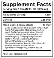 ERIOMIN® Lemon Flavanoids Extract (Citrus Lemon) (Fruit) (70% Eriocitrin), Beta Glucan 1,3/1,6 (from Saccharomyces cerevisiae), Berberine (as Berberine HCL), Fenugreek (Trigonella foenumgraecum) (seed), Curcumin (rhizomes) C3 Complex® (Turmeric extract standardized to 95% Curcuminoids), Cinnamon extract (Cinamomum burmanii) (bark), Lion's Mane Mushroom (Hericium erinaceous) (fruit), Ashwagandha (Withania somnifera) (root), GABA (gamma-Aminobutyric acid), L-Theanine, L-Arginine, Bacopa (Bacopa monnieri) (leaf), Ginkgo (Ginkgo biloba) (leaf), N-Acetyl-L-Tyrosine, Rhodiola Extract (Rhodiola rosea) (root), Phosphatidylserine, Acetyl-L-Carnitine HCI, Taurine, Vitamin B6 (as Pyridoxal-5-Phosphate), Vitamin B8 (Inositol), Vitamin B12 (as Methylcobalamin).